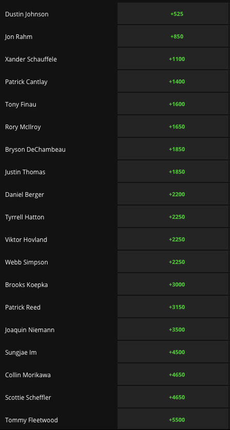 Other big names in the field include Xander Schauffele, Tyrell Hatton, Collin Morikawa, Patrick Cantlay, Webb Simpson, Brooks Koepka, and Tony Finau. 48 of the Top 50 players in the world are here (Tiger Woods and Paul Casey are absent).