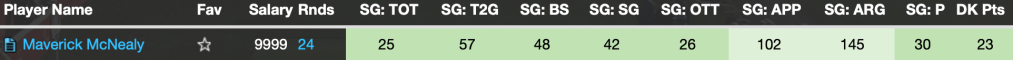 Over his last 24 rounds, here are his SG numbers…