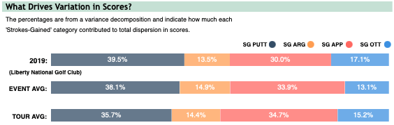 You can see above, putting at Liberty National was vastly more important compared to the average Tour event back in 2019. Targeting good Bentgrass putters will be key this week.